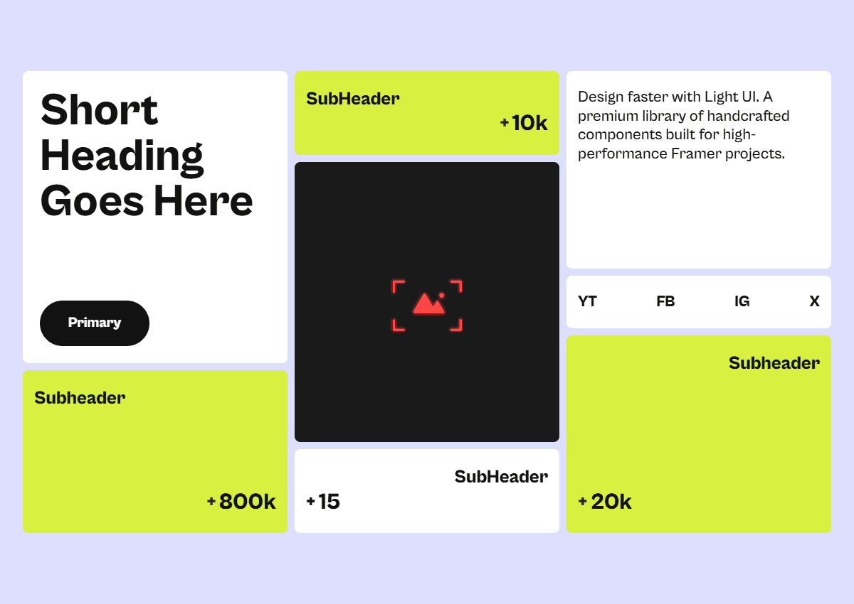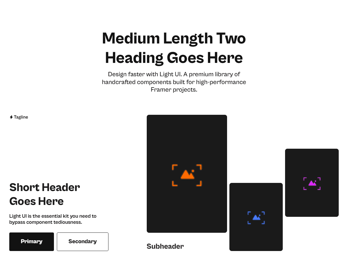 Stop the layout grind. Light UI offers 90+ responsive, high-performance Framer sections ready to launch.
